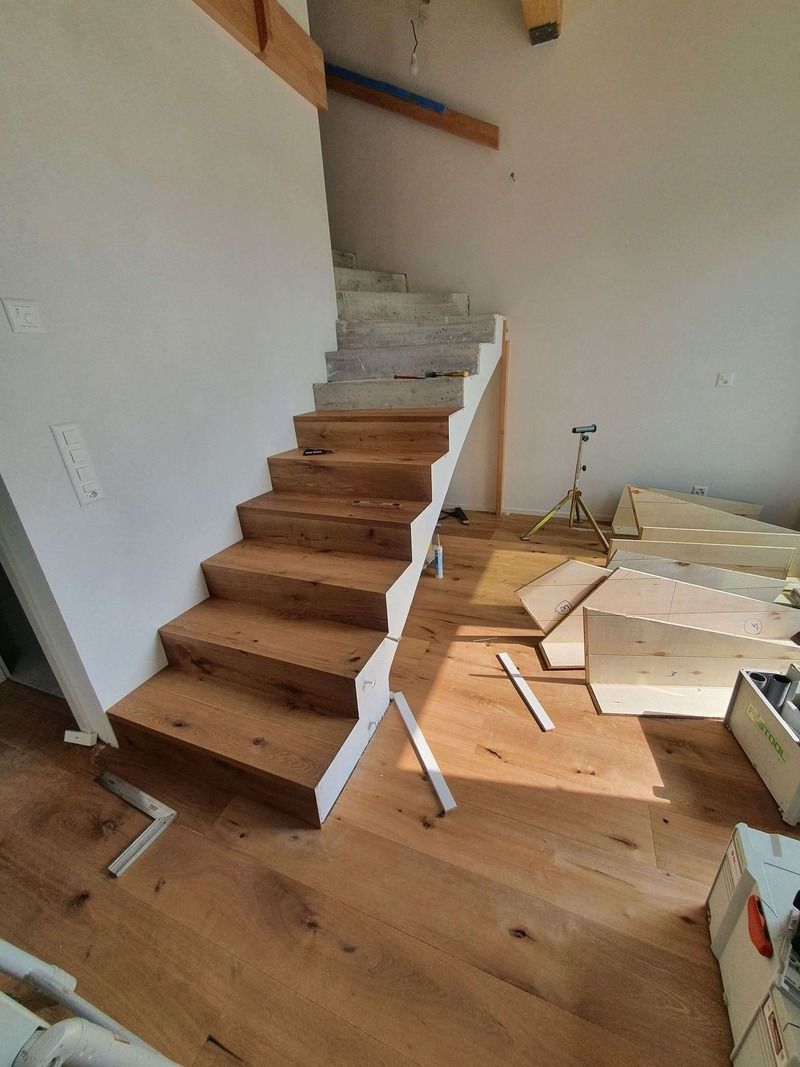 Nous offrons un service de revêtement d'escaliers sur mesure avec le parquet de votre choix, y compris la fabrication personnalisée du nez de marche. Nous travaillons avec divers types de parquets, tels que le bois massif, le LVT/PVC et le parquet contrecollé, pour un résultat impeccable et durable. En tant que parqueteurs professionnels, nous maîtrisons les techniques spécifiques nécessaires pour un revêtement d'escalier de qualité. Notre savoir-faire garantit une finition esthétique et fonctionnelle, transformant votre escalier en un élément élégant et raffiné de votre intérieur.